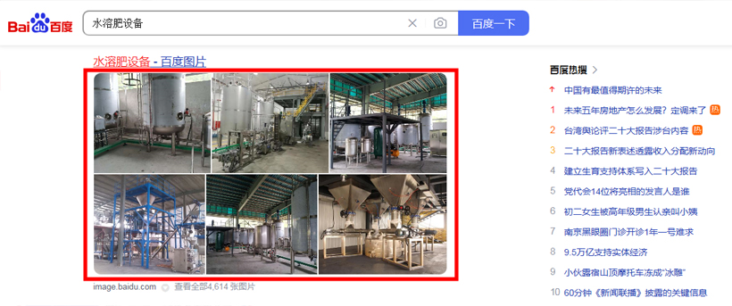 (以上為百度搜索“水溶肥設(shè)備”,首頁(yè)收錄展現(xiàn)的都是信遠(yuǎn)科技的圖片)