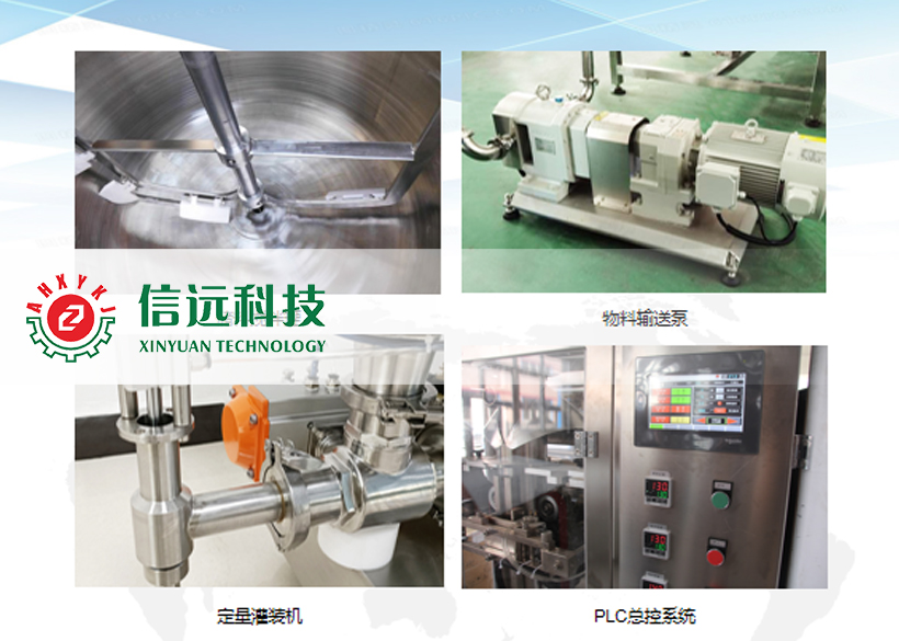 信遠科技液體全自動立式制袋包裝機組,是由密閉攪拌罐、物料輸送泵、定量灌裝機、制袋包裝機和成品輸送機組成??梢园b單袋克重在30-5000g范圍之間的液體物料,生產(chǎn)企業(yè)可以根據(jù)自己的需求選擇不同的設備型號。這套機組設備適用于食品、化工、醫(yī)藥等行業(yè)的流體、半流體物料的定量包裝,具有自動完成攪拌、送料、計量、制袋、灌裝、封口、切包、打印、計數(shù)、輸送等一系列功能。