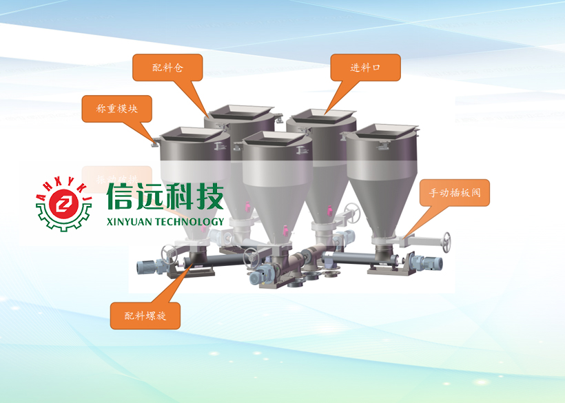 全自動粉劑水溶肥生產(chǎn)設(shè)備中自動配料系統(tǒng)由稱重模塊、配料倉、進(jìn)料口、手動插板閥、配料螺旋、振動破拱六大部分組成。